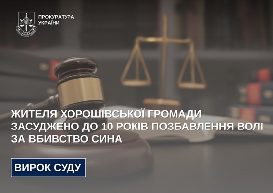 За підтримання публічного обвинувачення ювенального прокурора Коростишівської окружної прокуратури жителя Хорошівської громади визнано винним у вбивстві свого сина (ч.1 ст.115 КК України).
