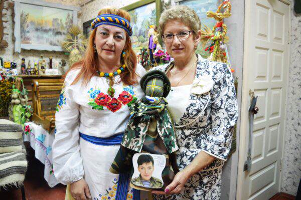 «Весь мій батальйон не стоїть тут у мене в закромах, а виконує свої функції ляльки-мотанки – оберігає та надає сил. Цього разу ми зробили ляльку-оберіг, яка називається Надія Савченко. Вона з Україною в серці, вона в «тільняшці», з жовто-блакитними кольорами на сукні та тримає в руках літак», - розповідає майстриня.