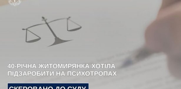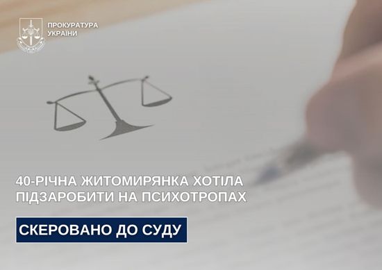 Житомирською окружною прокуратурою скеровано до суду обвинувальний акт за фактом придбання, зберігання, перевезення з метою збуту психотропних речовин (ч. 2 ст. 307 КК України).