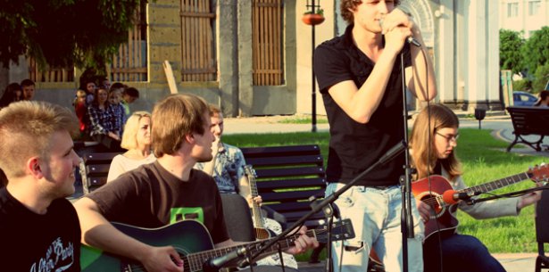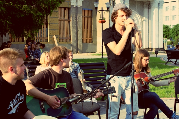 Бердичів, новини - Молодіжний  клуб «Об’єднання САМОПОМІЧ» організував концерт акустичної музики в центрі м. Бердичева. Головна ідея заходу: це впровадження в суспільну буденність настроїв, які поширювали б єднання людини та мистецтва,  робили більш популярним живе виконання музичних творів, тим більш, якщо вони є авторськими.