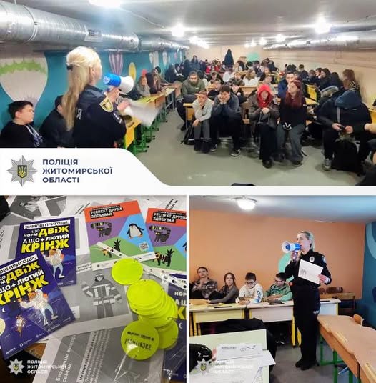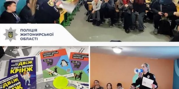 24 грудня старша інспекторка Служби освітньої безпеки Житомирського райуправління поліції № 1 Олена Зайцева провела превентивний захід у Новогуйвинському ліцеї імені Сергія Процика. В обговоренні взяли участь близько двохсот учнів.