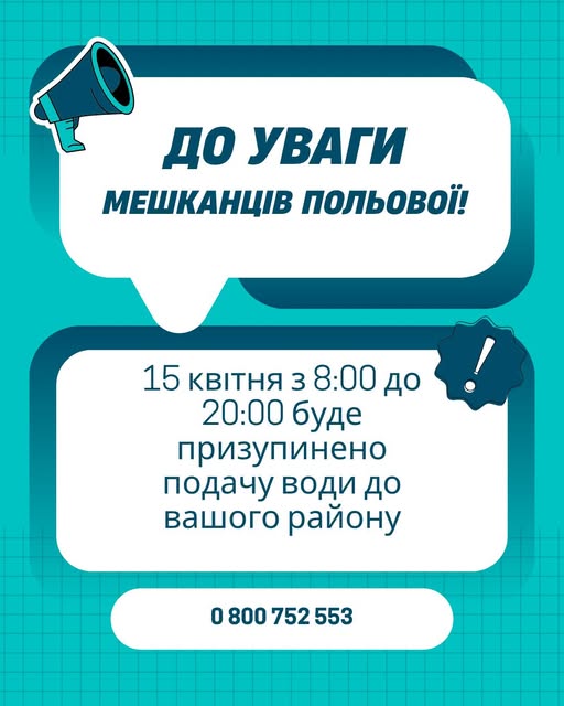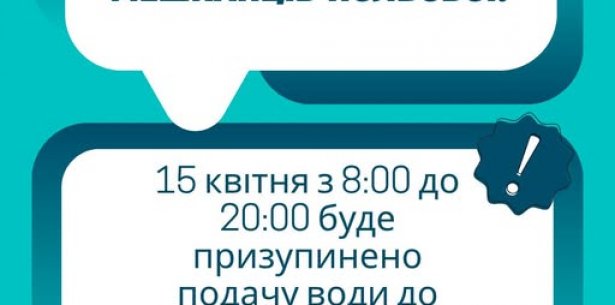 15 квітня з 08:00 до 20:00 у мікрорайоні Польова буде призупинено водопостачання.
