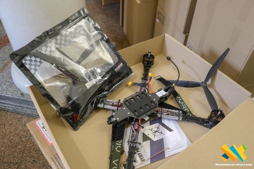 Житомирська громада продовжує активно підтримувати Збройні Сили України. Цього разу трьом військовим підрозділам передали 60 безпілотних літальних апаратів (БПЛА) мультироторного типу з системою донаведення «VYRIY PRO» 8”.
