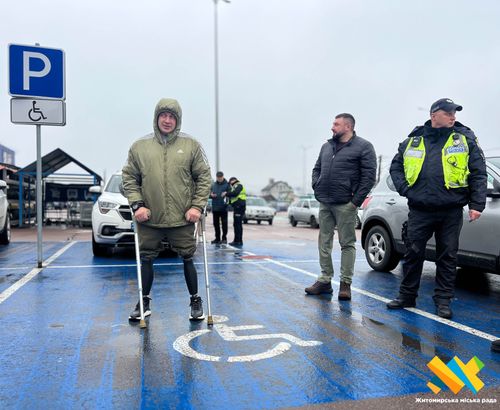 «Не паркуйтесь на місцях, призначених для транспорту осіб із інвалідністю! Так, звісно, зручніше зупинити авто на паркомісці, яке ближче до входу в той чи інший магазин/кафе… Але всі мають розуміти: ці місця — для зручності людей із інвалідністю. Це моральний облік та відповідальність кожного. Це питання гідного та належного ставлення до людей із інвалідністю, до ветеранів!» — заступник Житомирського міського голови Олег Смаль.