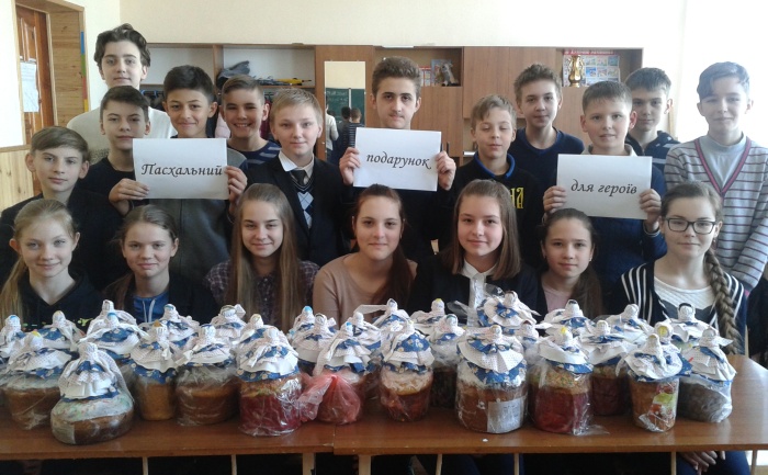 Житомирські новини - Великодні подарунки, серед яких паски, смачне варення, цукор, печиво зібрали для бійців у зоні АТО учні 5-11 класів Житомирської загальноосвітньої школи № 21, а учні 1-4 класів виготували власними руками обереги - ляльки–мотанки.