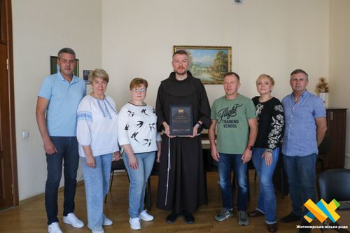 Отець Бернард отримав подяку від Житомирської міської ради, виконавчого комітету та депутатського корпусу — за багаторічну співпрацю, роботу з молоддю, збереження історії та духовну підтримку для мешканців громади.