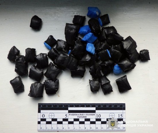 Під час огляду місця події поліцейські виявили на підлозі 11 полімерних згортків із кристалічною речовиною. За попередніми даними – альфа-PVP. Окрім цього, у смітнику знайшли шкарпетку, всередині якої знаходились ще 57 таких згортків. Попередньо, частина з них – із психотропними речовинами, решта – подрібнена рослинна маса, схожа на канабіс.