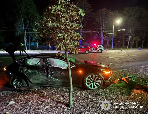 Попередньо, близько 00:10 відбулося зіткнення попутних автомобілів Tesla під керуванням 20-річного містянина та Mercedes, за кермом якого перебував 22-річний житель обласного центру. Після цього останній здійснив наїзд на електроопору.