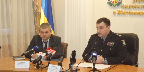 У брифінгу взяли участь заступник прокурора Житомирської області Віталій Мякішев та начальник Головного управління Національної поліції в Житомирській області В’ячеслав Печененко.