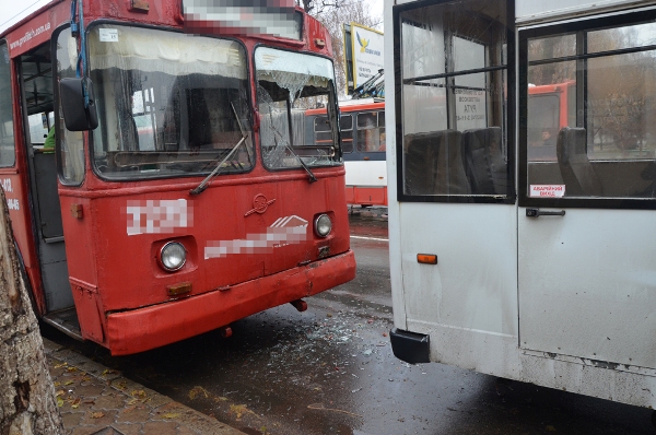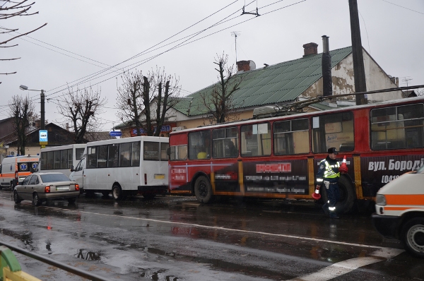Попередньо встановлено, що водій тролейбуса, який рухався по вул. Щорса, не впорався з керуванням і здійснив зіткнення з маршрутним автомобілем «Газель», який стояв на зупинці громадського транспорту, здійснюючи посадку-висадку пасажирів. За інерцією від удару мікроавтобус зіштовхнувся з іншою маршруткою, яка також стояла попереду на зупинці.