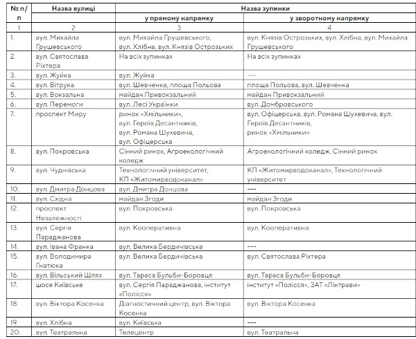 Де зупинятимуться приміські автобусні маршрути у Житомирі після введення цих змін — у таблиці: