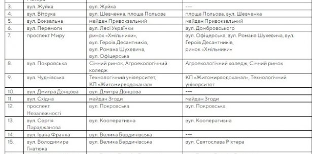 Зміни стосуються тих центральних вулиць, де курсує найбільша кількість громадського транспорту, — Київської та Великої Бердичівської.