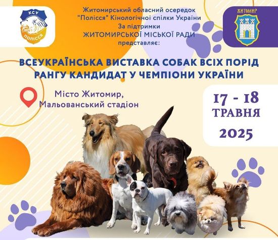Вперше в Житомирі пройде Всеукраїнська виставка собак всіх порід рангу Кандидат у Чемпіони України