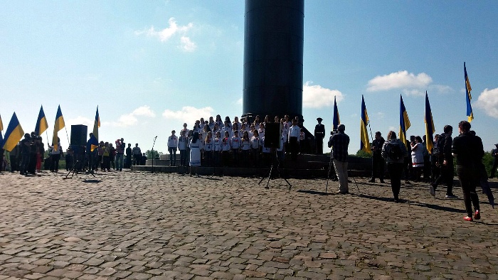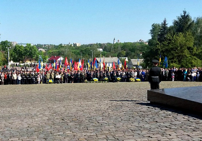Учасники заходу хвилиною мовчання вшанували пам'ять загиблих у Другій світовій війні, жертв нацизму та загиблих в АТО українських воїнів. Хор музичної школи №5 виконав пісню «Обійми» гурту «Океан Ельзи» та випустив у небо білих голубів у знак миру.