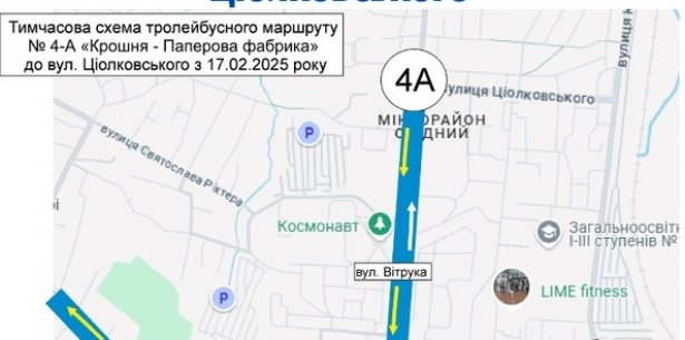 З 17.02.2025 тролейбус за маршрутом № 4А тимчасово здійснюватиме рух до вул. Ціолковського