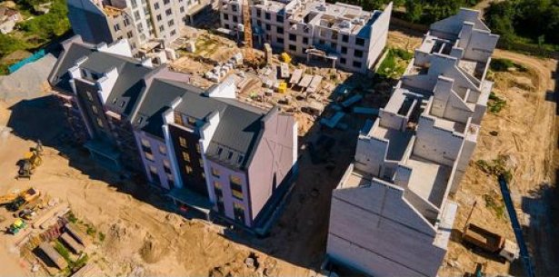 У Житомирі триває активна фаза будівництва житлового комплексу для внутрішньо переміщених осіб: зводяться дахи, встановлюються вікна, проводяться внутрішні роботи. Світлини, зроблені з висоти, чітко показують прогрес проєкту.
