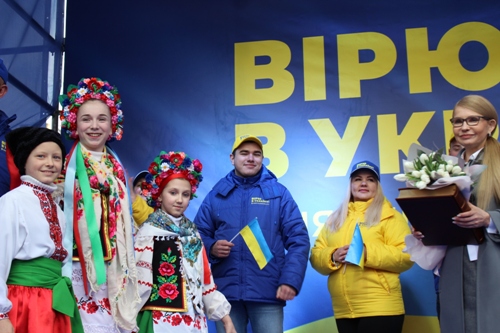 Під час зустрічі з громадою міста Коростеня для Юлії Тимошенко вручила ікону Алла Мельник - військовослужбовець 81-ої десантно-штурмової бригади, яка служила на фронті операційною медсестрою, а матір загиблого під Луганськом воїна АТО Любов Олександрівна Шленчак подарувала політику поліський рушник. Так коростенська громада благословила політика на її святу боротьбу проти злочинної влади, яка довела до зубожіння власний народ, нещадно грабуючи та знищуючи українців.